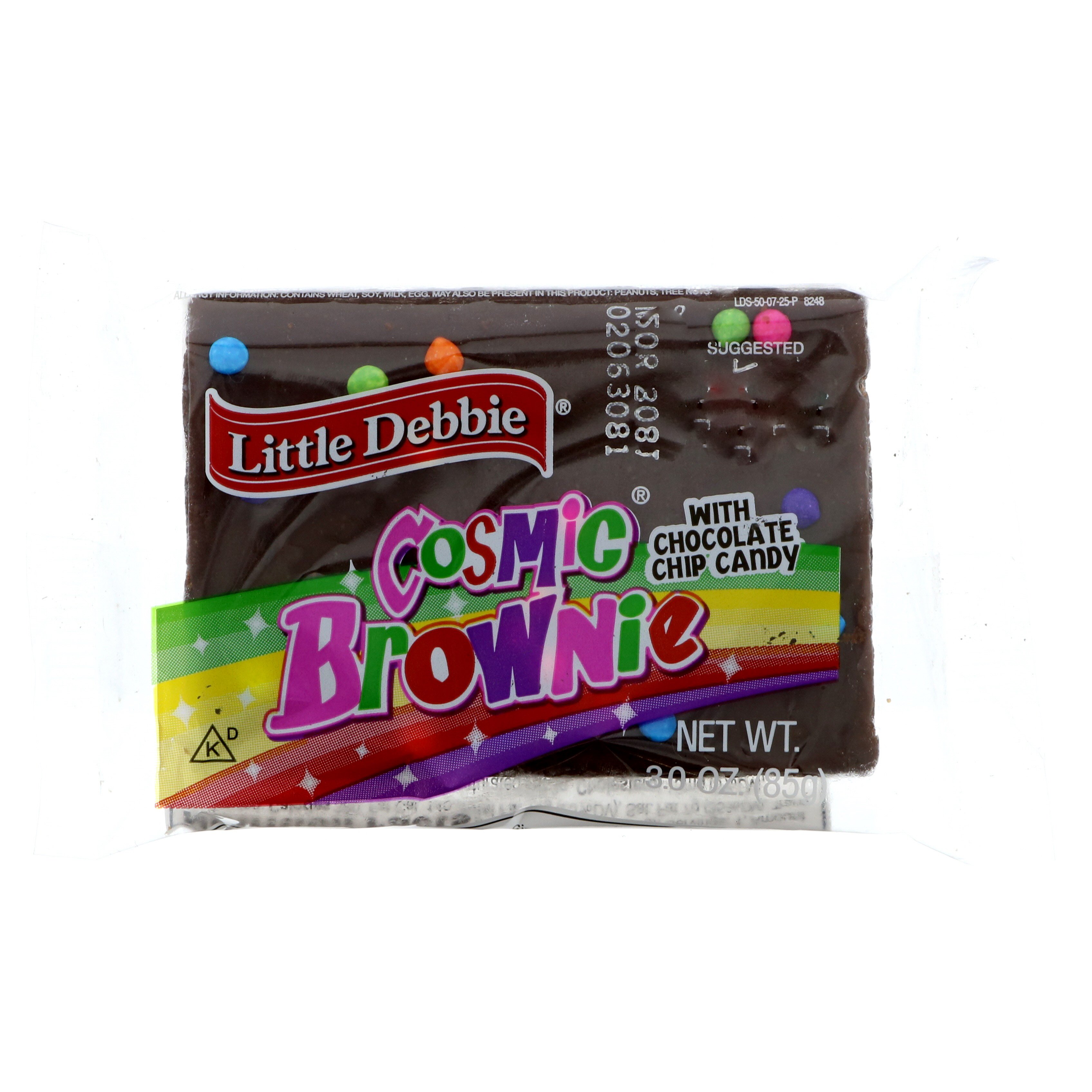 Little Debbie Cosmic Brownies with Chocolate Chip Candy Nutrition Facts Cosmic Brownies with Chocolate Chip Candy Serving Size 1.00 brownie (62g) Serving Per Container 6.0000 Amount Per Serving %DV we recommend Little Debbie Star Crunch Cookies, 12 ct $2.58 each ($0.20/oz) Add to list Add to cart Little Debbie Zebra Cakes, 10 ct 2 for $5.15 ($0.20/oz) Add to list