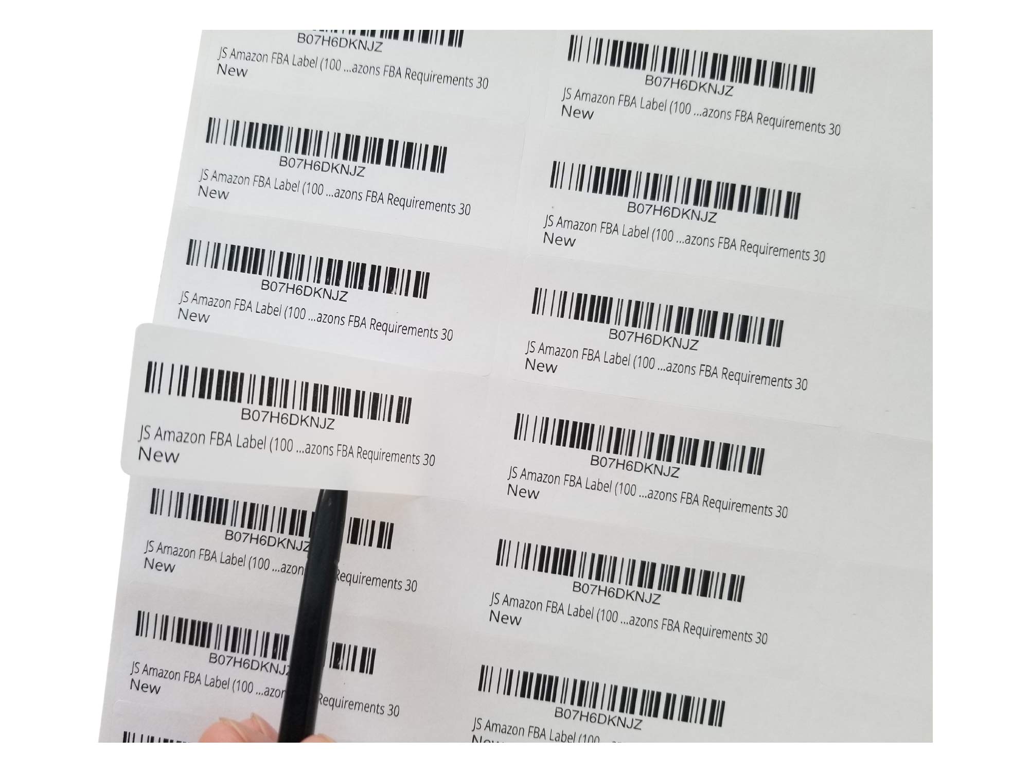 Use an Amazon barcode to track inventory - Amazon Seller Central Label paper requirements All Amazon barcodes must be printed in black ink on white, non-reflective labels with removable adhesive. Dimensions must be between 1 x 2 inches and 2 x 3 inches (1 x 3 inches or 2 x 2 inches, for example). For laser printers, the tools in your seller account support the following label sizes: