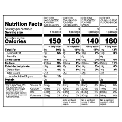 Small bag of doritos nutrition facts