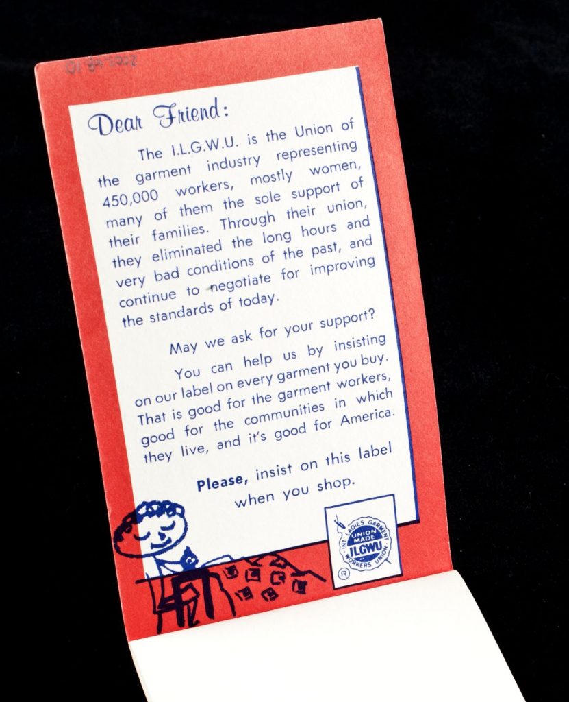 "Look for the Union Label": A History of the ILGWU's Iconic Jingle ... International Ladies' Garment Workers Union keychain, ca. 1950-1960. New-York Historical Society. Speak or show the phrase "look for the union label" to anyone who watched television in the 1970s or 1980s, and they are liable to start singing or humming the ILGWU's ditty of the same name. Look for the Union Label - Everything2.com Popular name of "Union Label," a 1975 song by Paula Green ( lyrics) and Malcolm Dodds ( music) written for the International Ladies' Garment Workers' Union, who used it in an American television commercial promoting union made clothing. when you are buying that coat, dress or blouse. our wages going to feed the kids, and run the house. Ennio Morricone - Union Label Lyrics | LetsSingIt Lyrics Unfortunately we don't have the lyrics for the song "Union Label" yet. We have added the song to our site without lyrics so that you can listen to it and tell others what you think of it. We at LetsSingIt do our best to provide all songs with lyrics. We have a large team of moderators working on this day and night. Or perhaps you can help us out. Don't Forget the Union Label, song lyrics Don't Forget the Union Label, song lyrics. There this brilliant little star lights up the way. In every way you can. Don't forget the Union Label, it's your friend. Don't forget the Union Label, it's your friend. And success will crown its efforts in the end. Don't forget the Union Label it's your friend. 1 - Although secondary sources list the ...