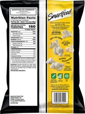 Amazon.com: Smartfood SMARTFOOD POPCORN, JALAPENO & CHEDDAR Large (180 g) bag from Canada. 6.34 Ounce (Pack of 1) 4.6 out of 5 stars 10. ... Calories Per Serving. 0 Calories; Up to 40 Calories; 40 to 100 Calories; 100 to 200 Calories; 200 to 300 Calories; Fat Calories Per Serving <40 Calories; 40-100 Calories; The Best & Worst Popcorn in America—Ranked! - Eat This Not That Smartfood White Cheddar Popcorn. 28g serving: 160 calories, 10g fat (2g saturated fat), 240 mg sodium, 13g carbs (2g fiber, 2g sugar), 4g protein. ... This popcorn is a little lower in calories than some of the other options and is made from organic ingredients. Plus, because it's made from coconut oil, you'll get the faintest hint of coconut ... Nutrition Facts for Smartfood White Cheddar Cheese Popcorn The % Daily Value (DV) tells you how much a nutrient in a serving of food contributes to a daily diet. 2,000 calories a day is used for general nutrition advice. 11 Net Carbs Per Serving Add to Food Diary. Eat better. Feel better. Learn more MyFoodDiary. ... Smartfood Smart 50 Sea Salt Popcorn. 3 3 ... Is Smartfood® Popcorn Good for You? - What The Popcorn Why is Smartfood® Popcorn Good for You? At an almost trivial 31 calories per one-cup serving, air-popped popcorn delivers far fewer calories than the average 153 calories in a single serving of potato chips. In addition to more calories, the calories contained in chips and other snack foods lack nutritional value and are known as "empty calories."