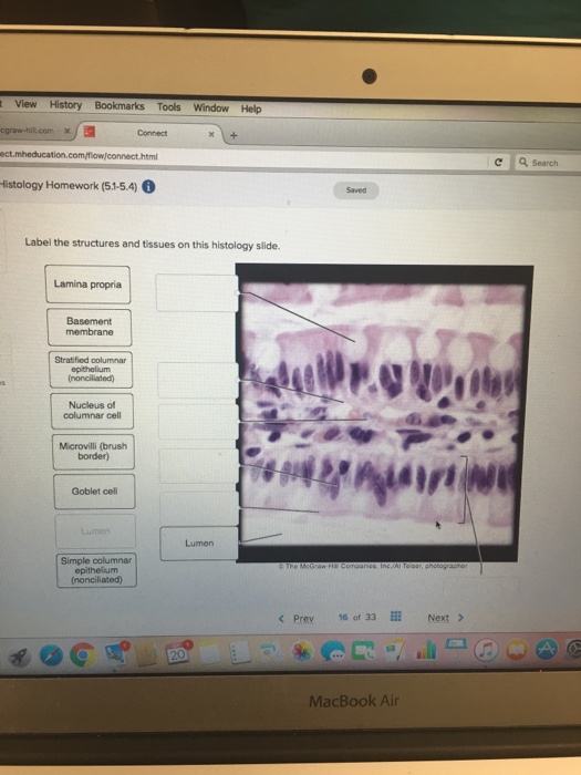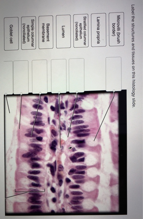Microscope Slides of Cells and Tissues - Histology Guide Tissues are classified into four basic types: epithelium, connective tissue (includes cartilage, bone and blood), muscle, and nervous tissue. Chapter 1 - The ... Solved Label the tissues and structures on this histology Question: Label the tissues and structures on this histology slide. Microvilli Stratified columna epithelium Goblet cell Cilia Basal cell Pseudostratified ...