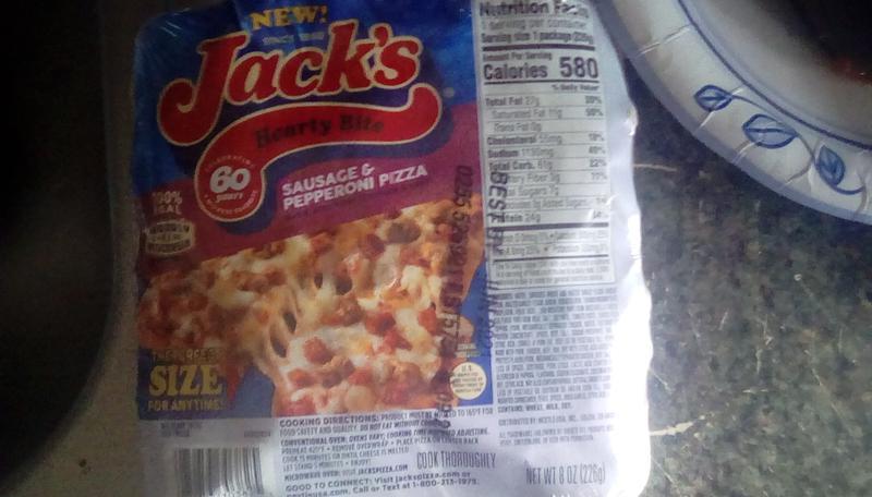 Original Thin Crust Cheese Frozen Pizza | Official JACK'S® PIZZA... 30%. Trans Fat 0g. Cholesterol 25mg. 8%. Sodium 550mg. 24%. Total Carbohydrate 35g. 13%. Dietary ... Jack's Pizza Calories and Nutritional Information - FatSecret Original Sausage & Pepperoni Pizza (Jack's) Per 1 serving - Calories: 290kcal | Fat: 13.00g | Carbs: 29.00g | Protein: 14.00g Nutrition Facts - Similar. Naturally Rising Cheese Pizza (Jack's) Per 1 serving - Calories: 340kcal | Fat: 9.00g | Carbs: 49.00g | Protein: 14.00g Nutrition Facts - Similar. Related searches for: Jack's Pizza. Calories in Jack's Pizza - Menu With Nutrition Calories in Jack's Pizza - Menu With Nutrition Browse all the foods and products from Jack's Pizza and get their nutritional information. CommonFood Restaurants Grocery Calculators Articles Menu With Nutrition >Grocery Foods >Jack's Pizza 1 categories in total 20 food items Calories in Jack's Pizza